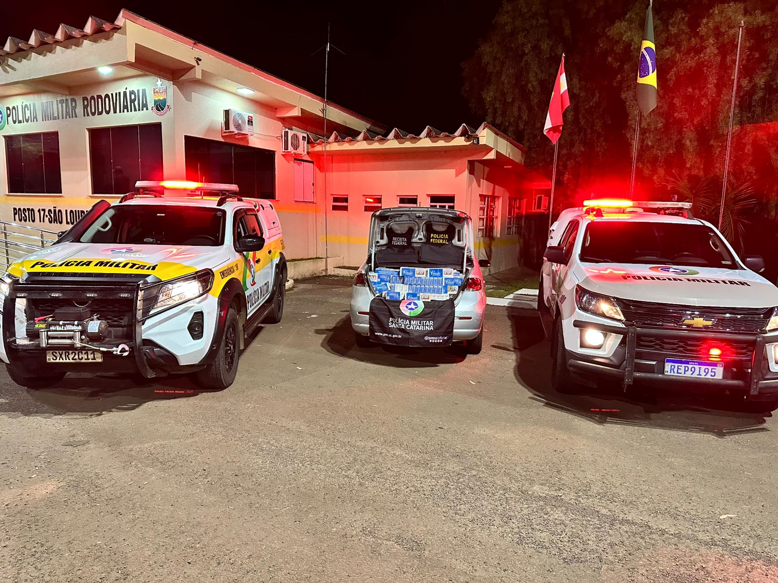 Na noite de sexta-feira (13), por volta das 20h30, uma operação conjunta resultou na apreensão de aproximadamente 10 mil maços de cigarros contrabandeados na rodovia SC-157, em São Lourenço do Oeste.