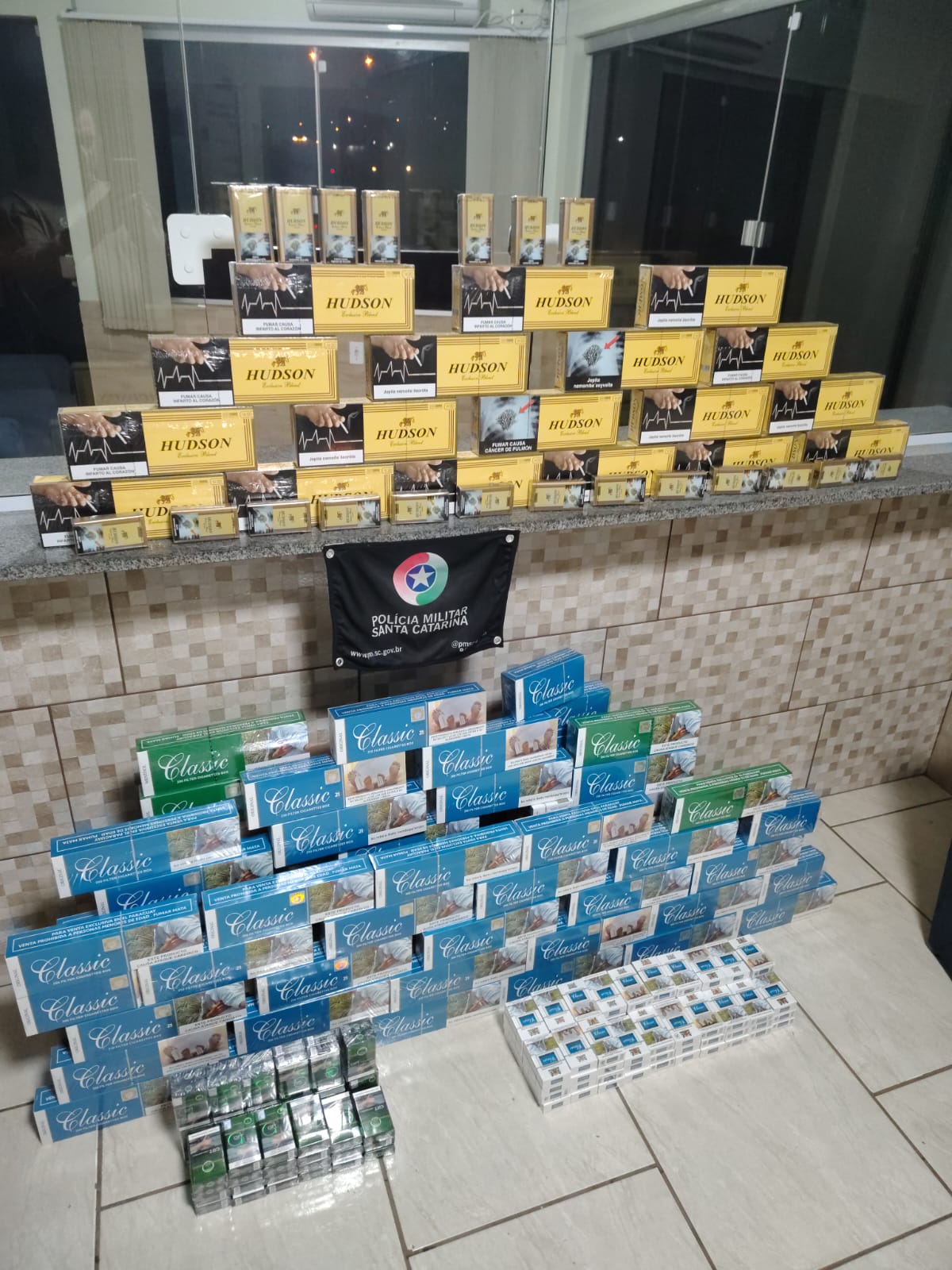 Dentro de dois volumes pertencentes ao passageiro, foram encontrados aproximadamente 739 maços de cigarros de marcas diversas, como Classic, Hudson e Gift, caracterizando o crime de contrabando. Toda a mercadoria foi apreendida, lacrada e será encaminhada à Receita Federal de Joaçaba-SC para os devidos procedimentos legais.