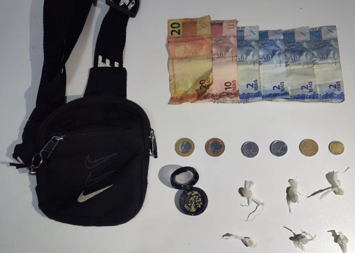 Ao notar a aproximação da viatura, a suspeita mudou repentinamente de direção e tentou esconder o rosto, o que motivou a abordagem por parte dos agentes. Durante a identificação e a revista pessoal, foram encontradas sete porções de uma substância semelhante ao crack, além de dinheiro em espécie.