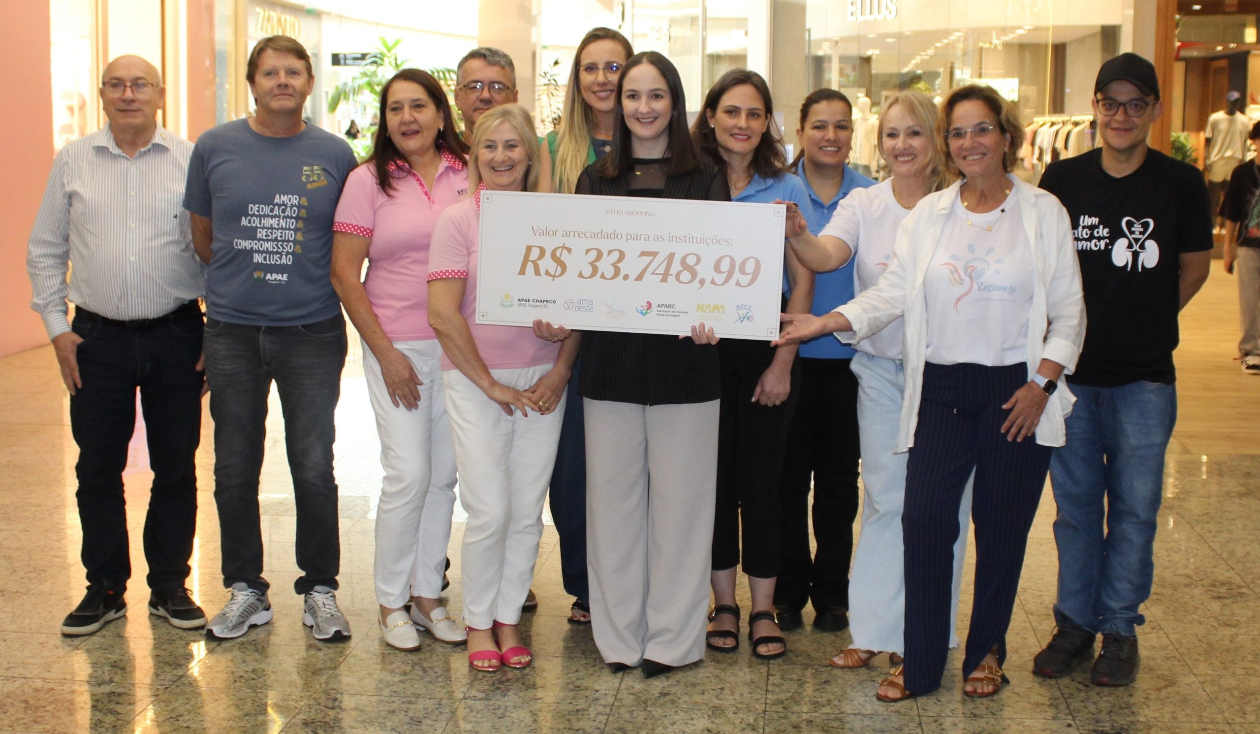 Entre as instituições beneficiadas estão a Apae Chapecó, que recebeu R$ 14.134,00; o Núcleo de Atenção aos Pequenos Animais (Napa), com R$ 6.109,99; a Rede Feminina de Combate ao Câncer, que arrecadou R$ 4.230,00; a AMA Oeste, com R$ 3.900,00; a Associação dos Pacientes Renais de Chapecó (Aparc), com R$ 3.075,00; e a Associação Beneficente Recomeço, que recebeu R$ 2.300,00.