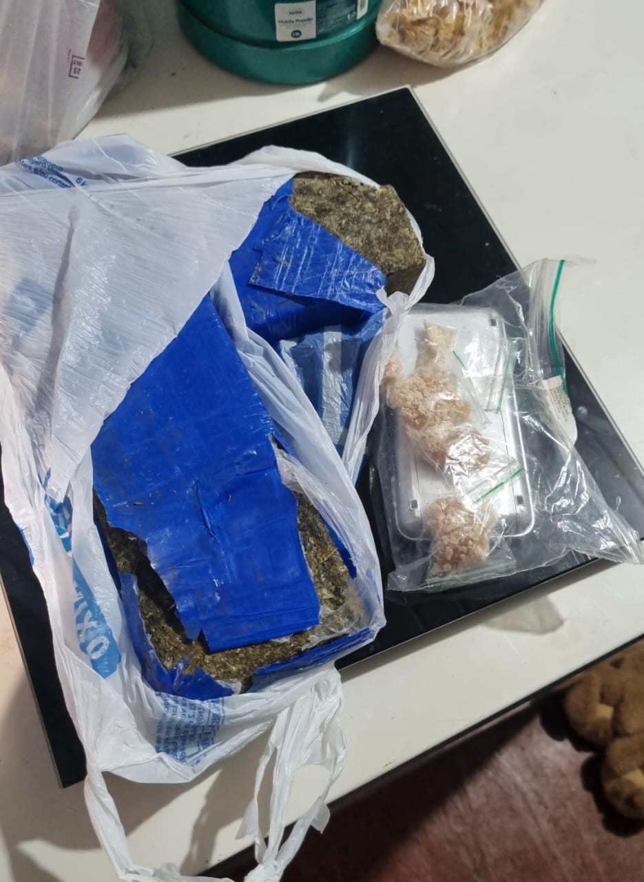 Durante a busca no imóvel, o suspeito foi encontrado dormindo. Ao ser questionado sobre a existência de drogas no local, ele confirmou e indicou onde os entorpecentes estavam escondidos. No ponto indicado foram apreendidos aproximadamente 1 quilo de maconha, porções de crack e uma balança de precisão.