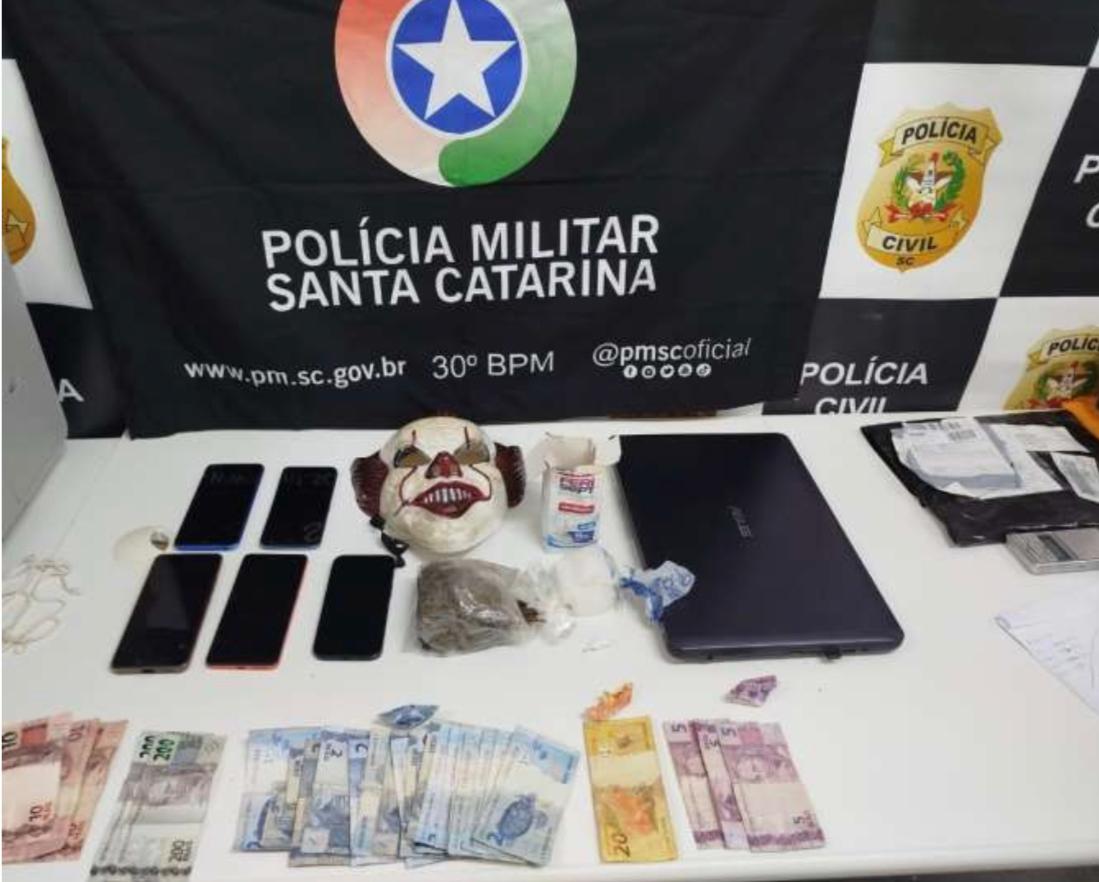 Dando continuidade às diligências, as equipes se deslocaram até uma residência em Faxinal dos Guedes, onde localizaram mais entorpecentes, sendo cerca de 92,2 gramas de maconha e 0,8 gramas de cocaína, além de dinheiro e outros objetos relacionados à atividade criminosa.