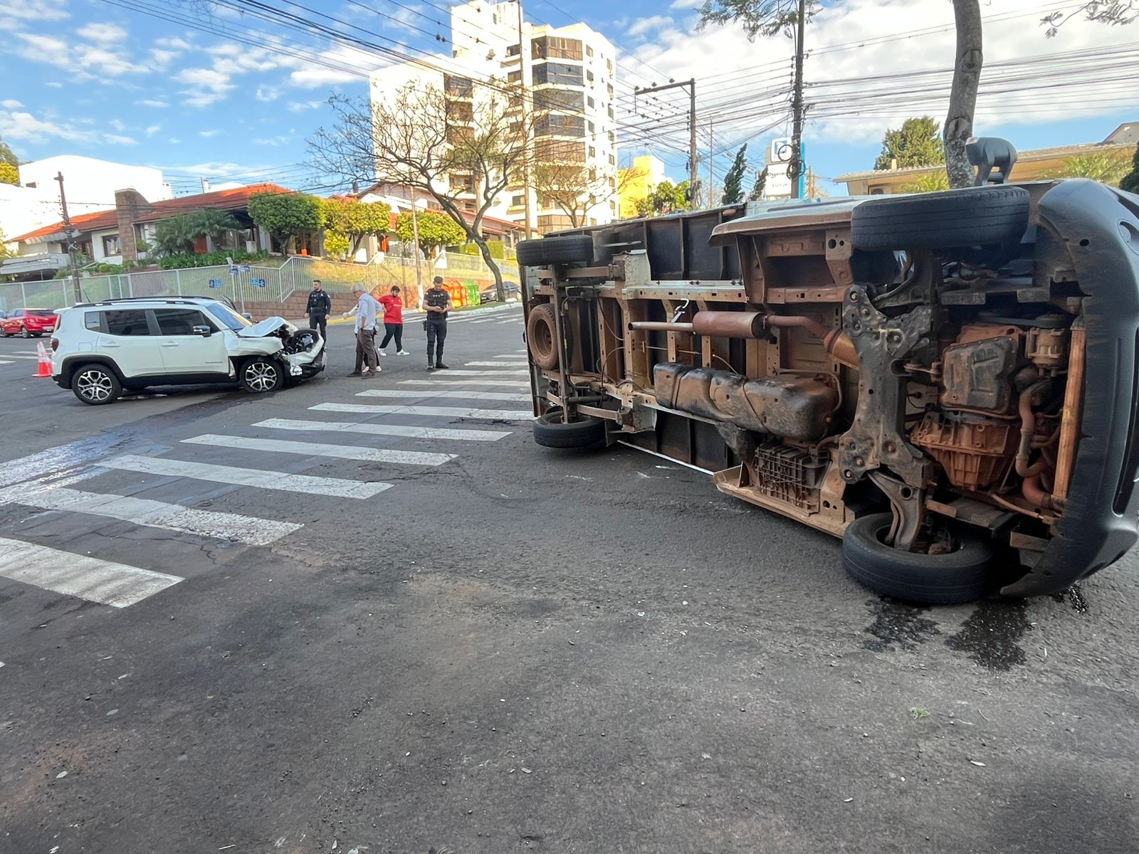 A colisão envolveu um Jeep/Renegade e um caminhão utilitário da Prefeitura de Gramados Loureiros, município do Rio Grande do Sul. Com o impacto, o caminhão acabou tombando na via.