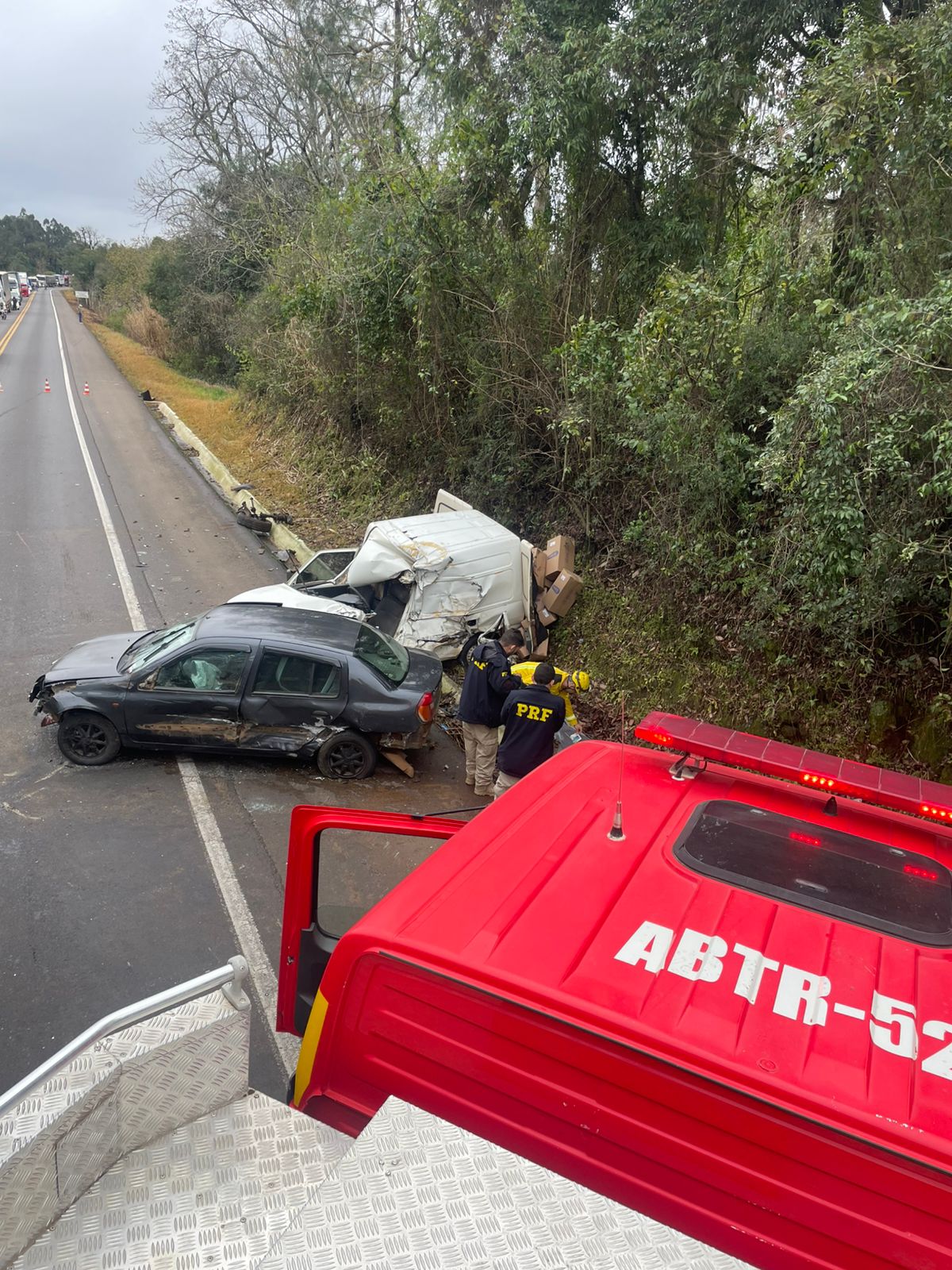 Um acidente envolvendo quatro veículos deixou uma vítima fatal no início da tarde desta sexta-feira, dia 8, na BR-282, entre os municípios de Cordilheira Alta e Xaxim, no Oeste catarinense. De acordo com o Corpo de Bombeiros, se envolveram na colisão um Renault Clio Sedan, uma Fiat Fiorino, um Volkswagen Gol e uma van Renault Master.
