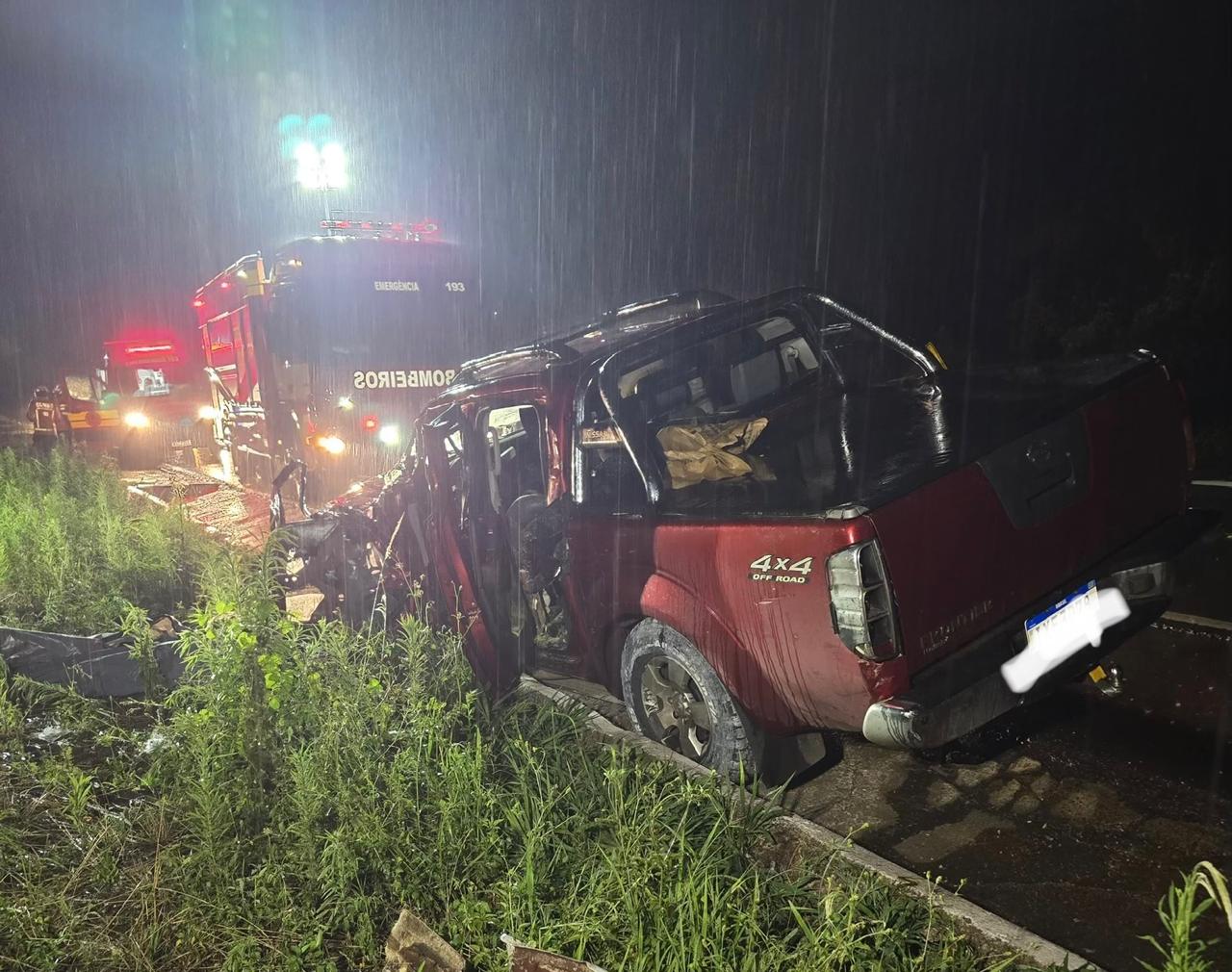 O condutor da caminhonete, foi encontrado inconsciente, sem sinais vitais, preso às ferragens, sendo constatado óbito ainda no local. A guarnição realizou o desencarceramento da vítima.