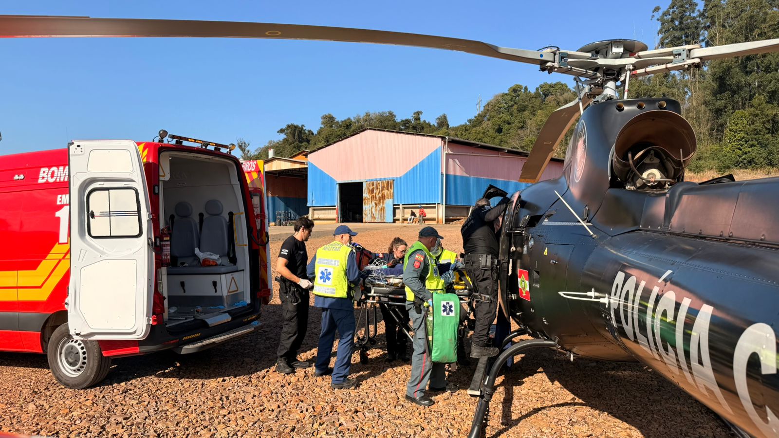 Na tarde desta segunda-feira (14), um adolescente de 16 anos ficou gravemente ferido após sofrer um acidente de trabalho no município de Modelo, Oeste de Santa Catarina.