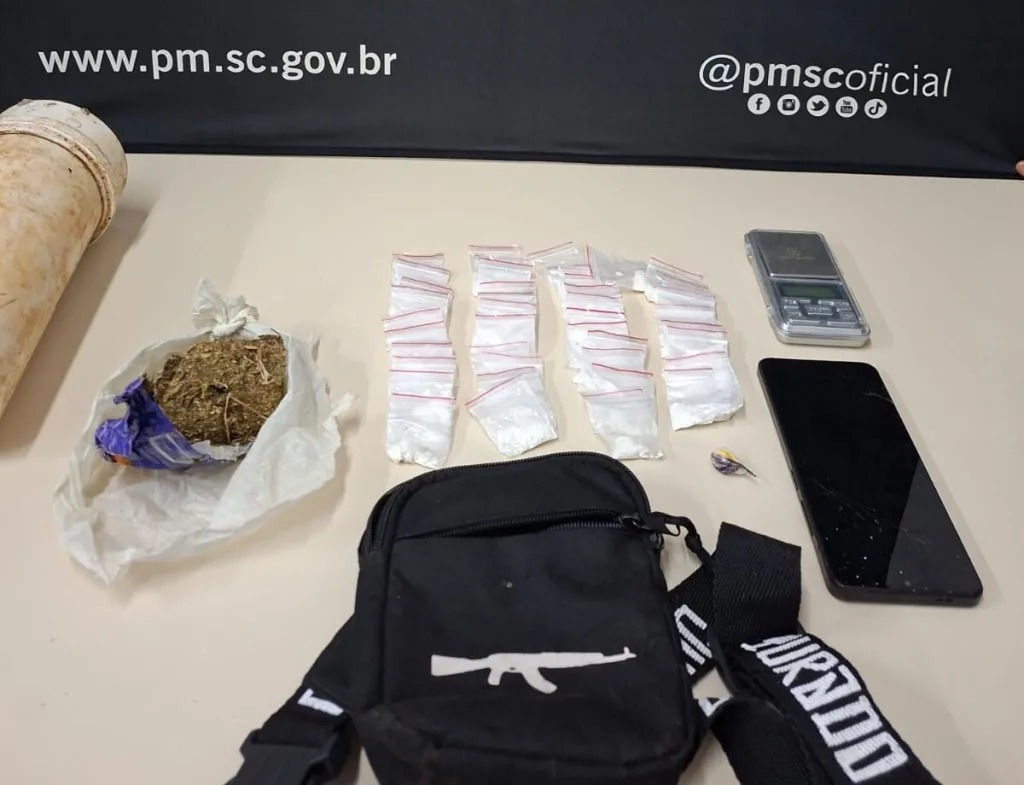 Durante a ocorrência, os policiais realizaram diligências em um imóvel da região, onde localizaram diferentes porções de entorpecentes. Ao todo, foram apreendidos 39,68 gramas de cocaína, distribuídas em 43 buchas prontas para a venda, além de 66,74 gramas de maconha.