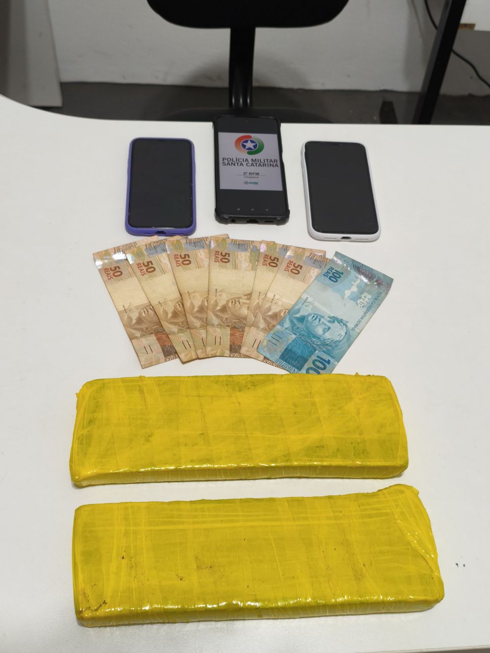 Após serem interceptados, os militares realizaram a abordagem e encontraram R$ 366,00 em dinheiro com os menores. Ao verificarem o material dispensado durante a fuga, foi constatado que se tratava de uma embalagem contendo aproximadamente 1,020 quilo de maconha.