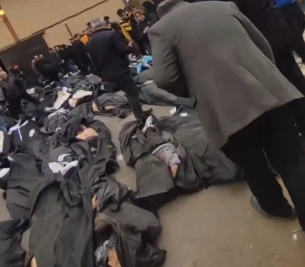 Em divulgação feita por Maryam Shafipour @MaShafipour numa conta da plataforma X (antigo Twitter), a tragédia é mostrada em vídeo na forma mais cruel da ação humana. Recomenda-se cautela ao abrir clicar para ver o vídeo, pois contém cenas difíceis. O vídeo foi filmado, segundo a Agencia de Notícias France-Presse, em Kahrizak, ao sul do Teerã e nas imagens aparece o Centro de Diagnóstico Forense da Província de Teerã. Na porta, há várias pessoas chorando, familiares das vítimas fatais.