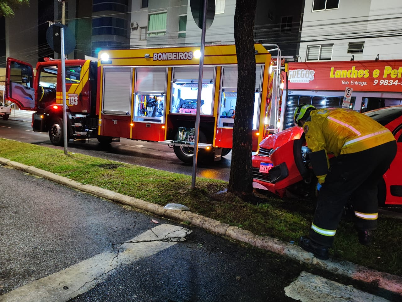 Por volta das 05h40 deste sábado (14), as guarnições do 6º Batalhão de Bombeiros Militar foram acionadas para atendimento de ocorrência de acidente de trânsito, envolvendo saída de pista seguida de colisão de veículo contra objeto fixo (árvore), na Rua São Pedro, esquina com a Rua Nereu Ramos, em Chapecó.