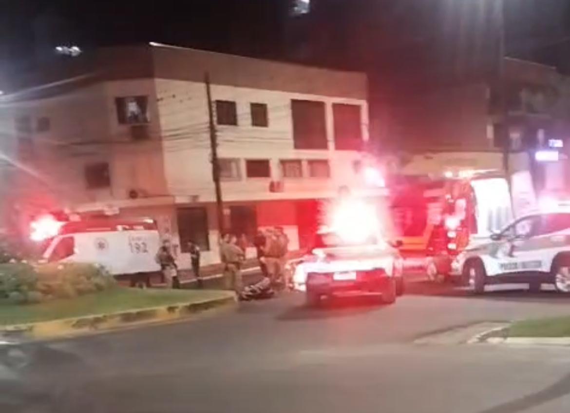 Homem e mulher estavam sem capacetes em uma motocicleta e desobedeceram ordem de parada; colisão ocorreu no centro da cidade