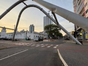 Retirada da estrutura será neste domingo (19) Após anos na Avenida Getúlio Vargas, os icônicos arcos brancos, que se tornaram um marco visual de Chapecó, terão uma nova morada. Neste domingo, 19 de janeiro, eles serão removidos para dar continuidade às obras do Boulevard do Calçadão, que está transformando o centro da cidade. A decisão de realocar os arcos faz parte do projeto de modernização da área central de Chapecó. O boulevard busca criar um espaço mais acessível, funcional e atrativo para pedestres, comerciantes e visitantes, contribuindo para o desenvolvimento urbano e turístico da região. Os arcos serão instalados no Parque Eldorado, um local que está sendo construído e promete oferecer uma nova experiência aos moradores. A informação foi confirmada pelo Prefeito em Exercício, Valmor Scolari, ao Jornalismo da Rádio Chapecó FM. As obras do Boulevard na Avenida Getúlio Vargas seguem e a expectativa é de que o espaço se torne um dos cartões-postais de Chapecó.