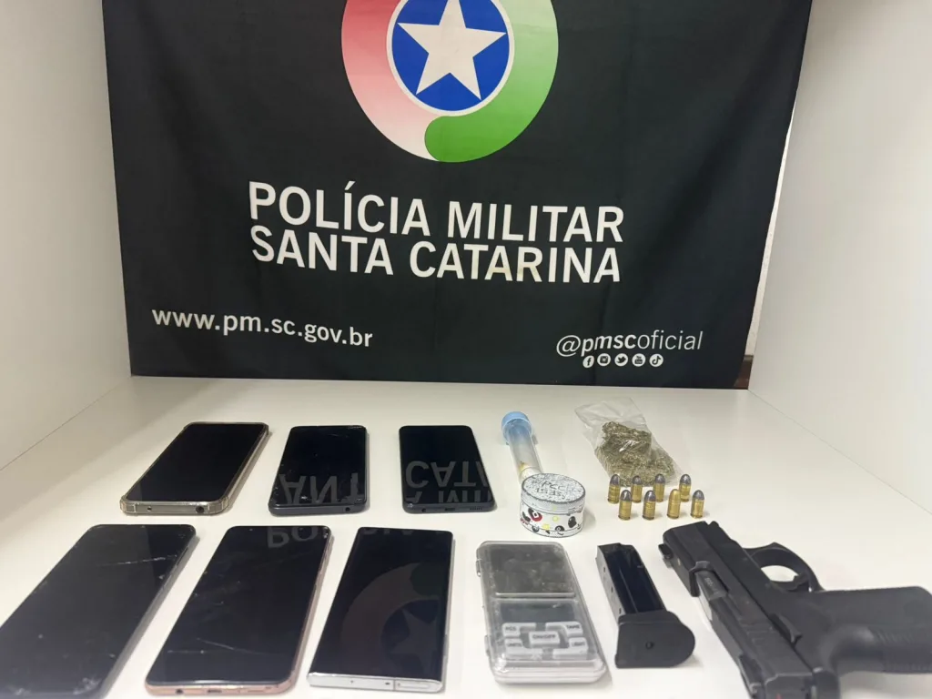 Uma operação conjunta das polícias Militar e Civil resultou na apreensão de uma arma de fogo e seis celulares em uma residência de Seara, no Oeste catarinense. O imóvel estava sendo monitorado por suspeita de envolvimento com o tráfico de drogas. Dois homens foram encontrados no local e confessaram fazer parte de uma organização criminosa.