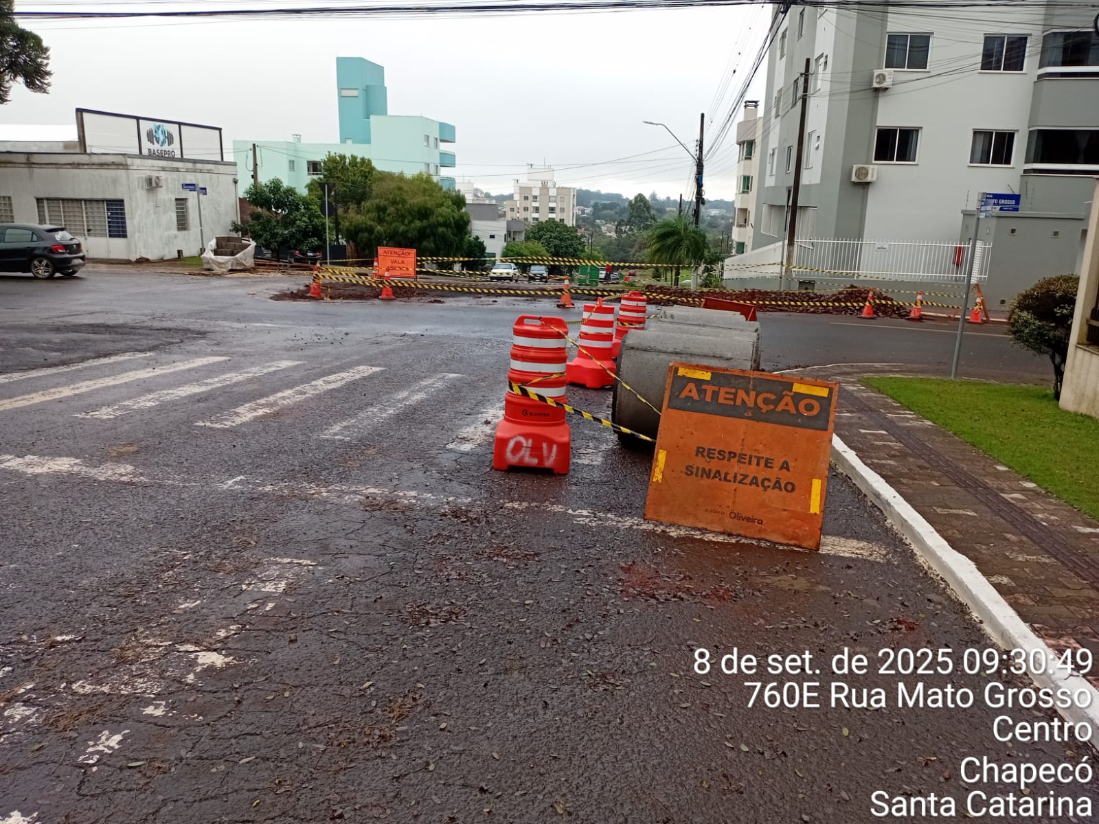 A Prefeitura de Chapecó informa que devido a obras de drenagem na rua Mato Grosso, esquina com a Achiles Tomazzeli, metade da pista foi interditada.