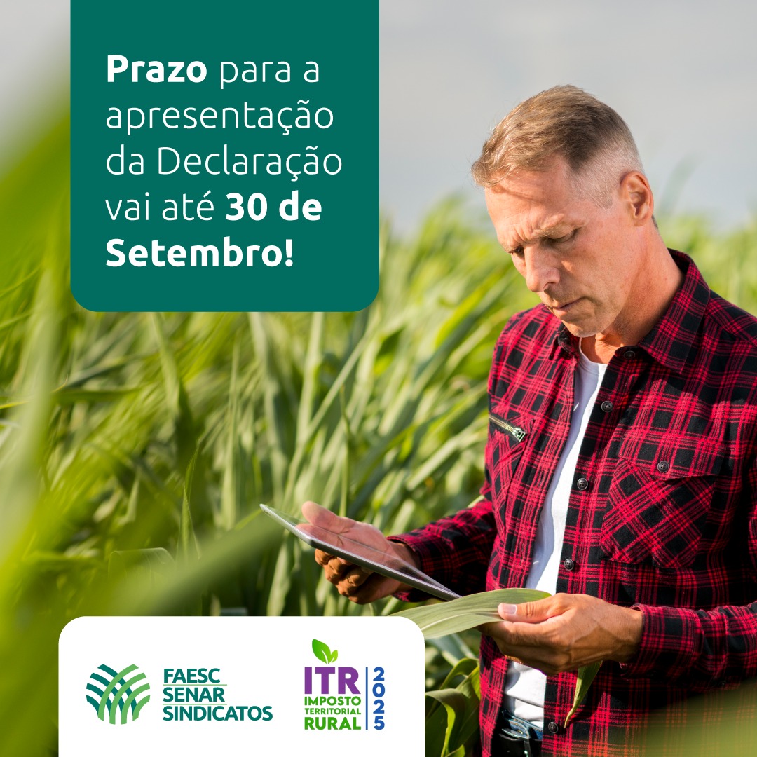 A Federação da Agricultura e Pecuária do Estado de Santa Catarina (Faesc) chama a atenção dos produtores rurais para o prazo de entrega da Declaração do Imposto sobre a Propriedade Territorial Rural (DITR) referente ao exercício de 2025.