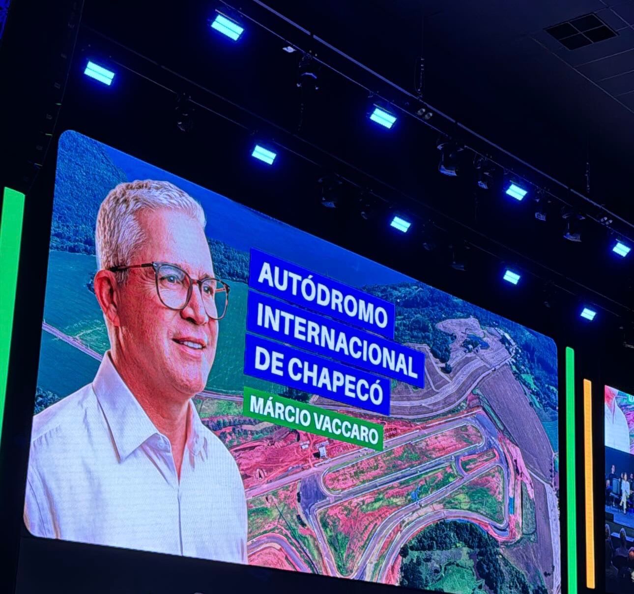 Durante o evento do Reage Brasil, realizado na noite de terça-feira (31), na Get Church, o prefeito de Chapecó, João Rodrigues, assinou projeto de lei que denomina o Autódromo Internacional de Chapecó, Márcio Vaccaro.