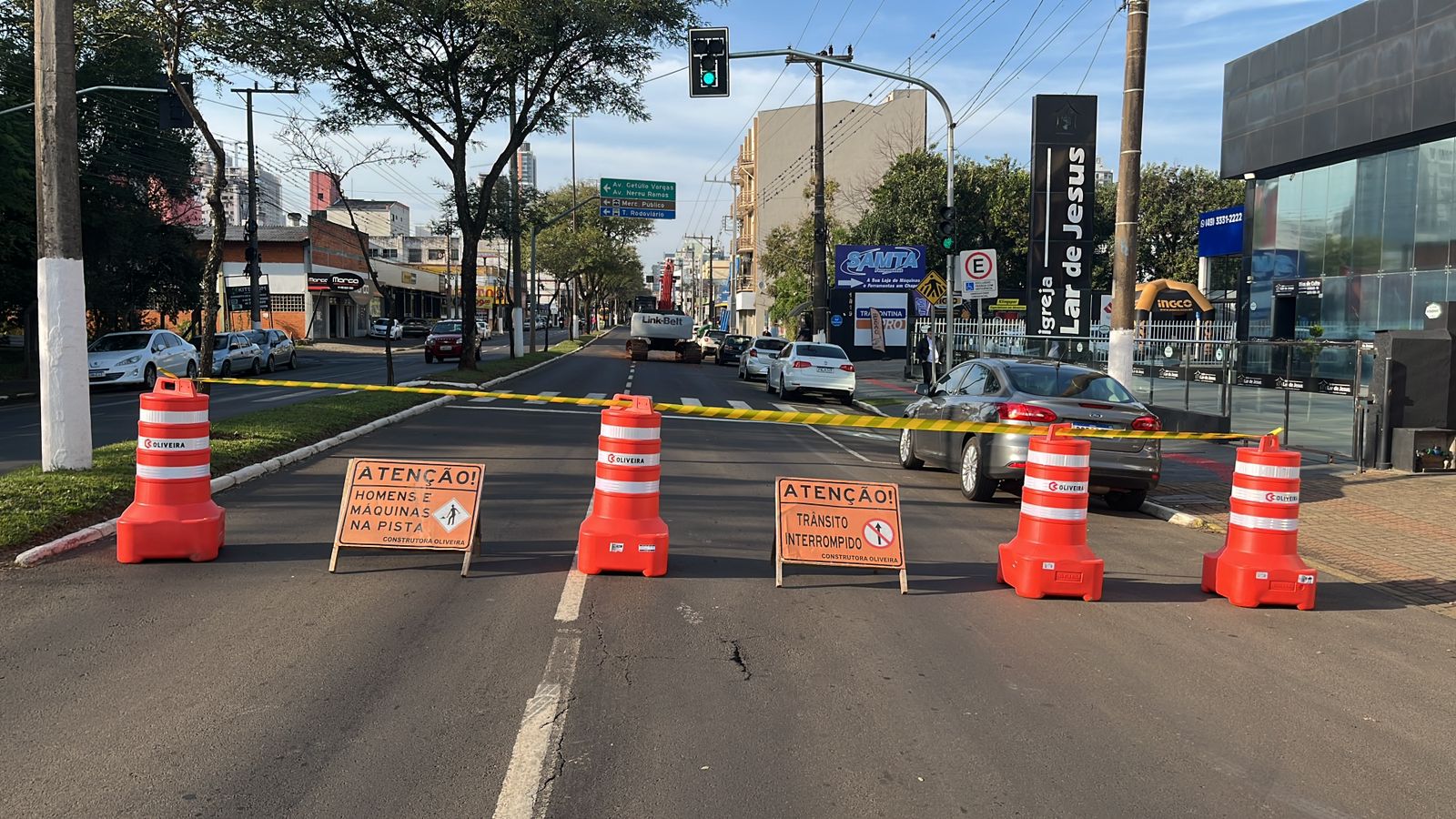 A Prefeitura de Chapecó, por meio da Secretaria de Desenvolvimento Sustentável e Obras Estruturantes, informa que a Avenida Fernando Machado foi bloqueada na manhã desta terça-feira (19), no sentido Bairro/Centro, entre o posto Gambatto, próximo da Polícia Ambiental, até a rua Sicília.