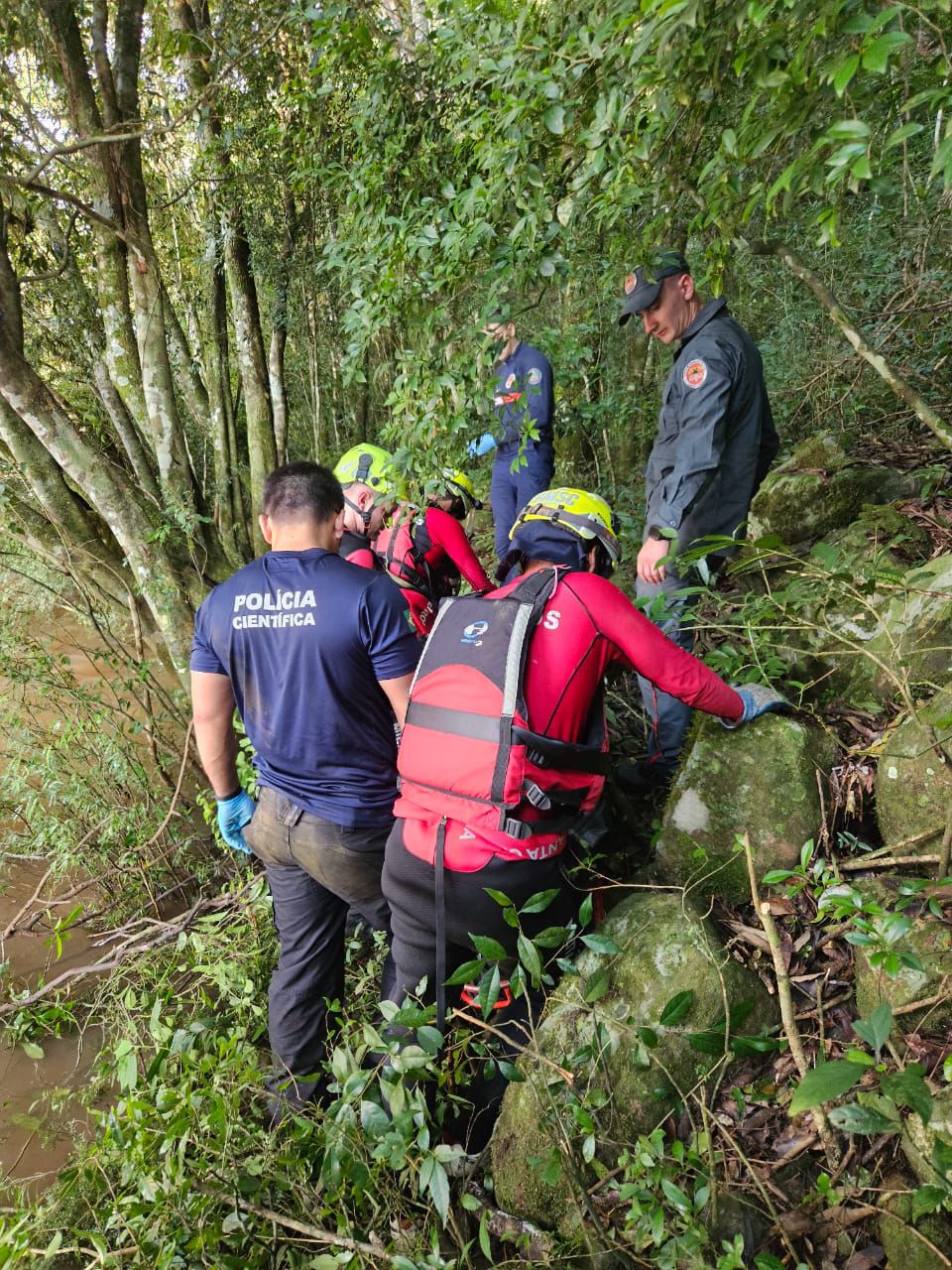 Após a localização, os trabalhos passaram a ser concentrados no resgate do corpo, que estava preso em uma das margens do rio, em um ponto de difícil acesso, a aproximadamente 10 quilômetros do local do acidente registrado no dia 1º.