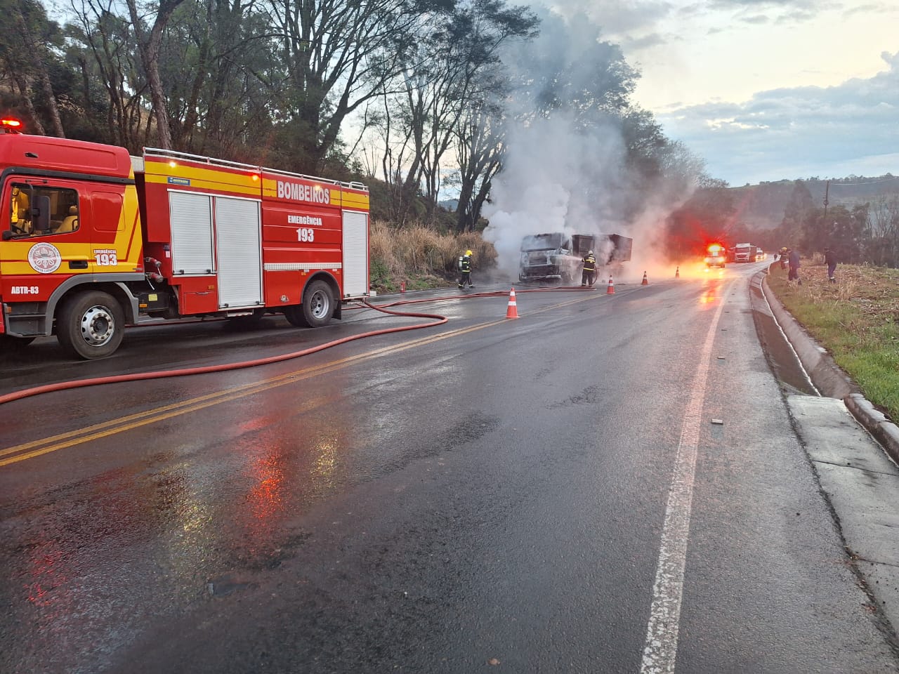 Trânsito precisou ser interrompido para combate às chamas e limpeza da pista