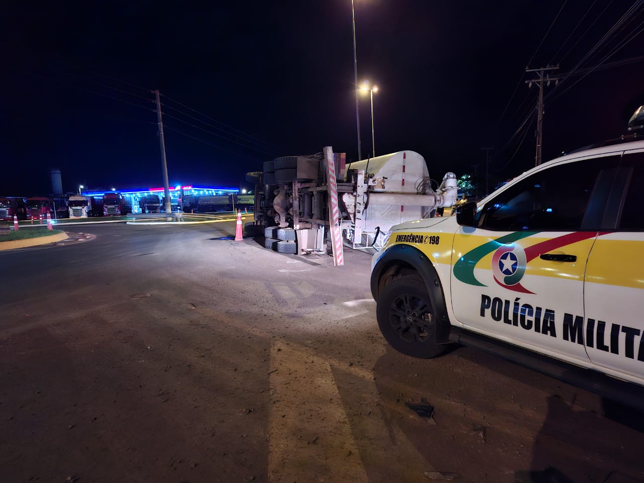 Segundo a Polícia Militar Rodoviária, o caminhão IVECO/Tector 240E25, com placas de Nova Itaberaba, trafegava no sentido Xanxerê a Bom Jesus, quando ao se aproximar de uma rotatória, precisou realizar uma manobra brusca para evitar colidir com um veículo de passeio que teria invadido a preferencial.
