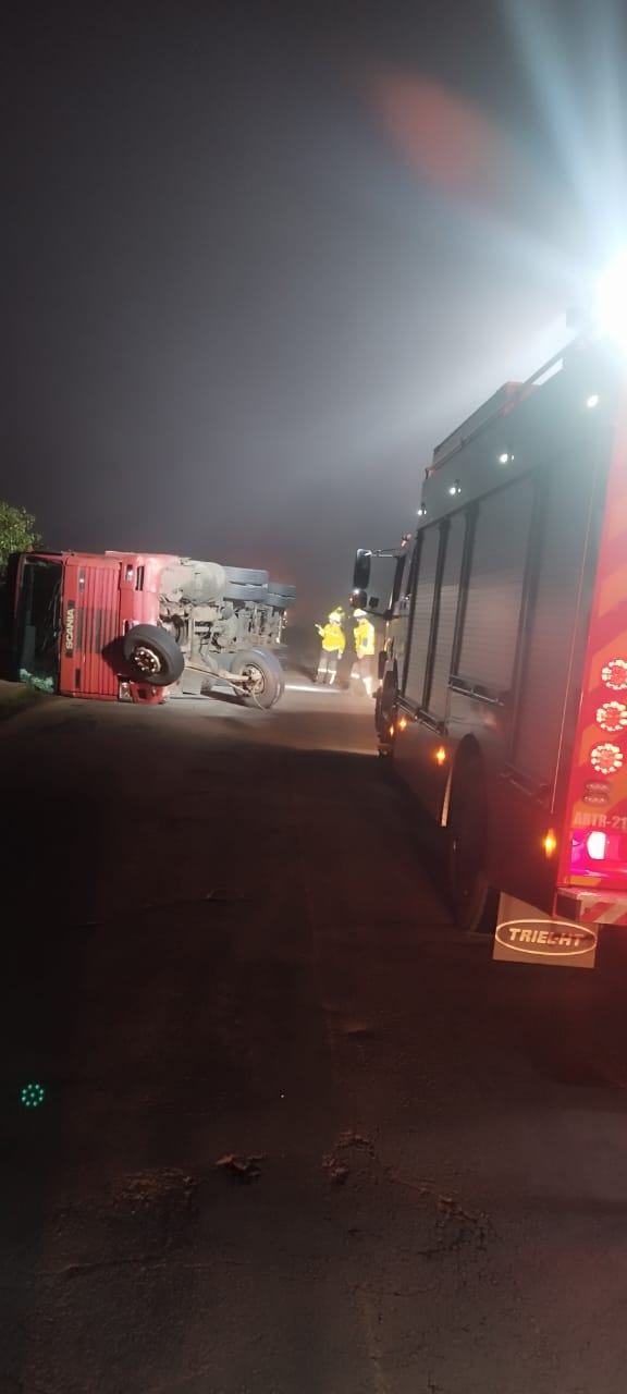 Na madrugada desta segunda-feira (26), por volta das 00h23min, o Corpo de Bombeiros Militar de São Miguel do Oeste foi acionado para atender a um acidente de trânsito envolvendo um caminhão que saiu da pista e tombou sobre a ponte do Rio das Antas, na rodovia entre Maravilha e São Miguel do Oeste.