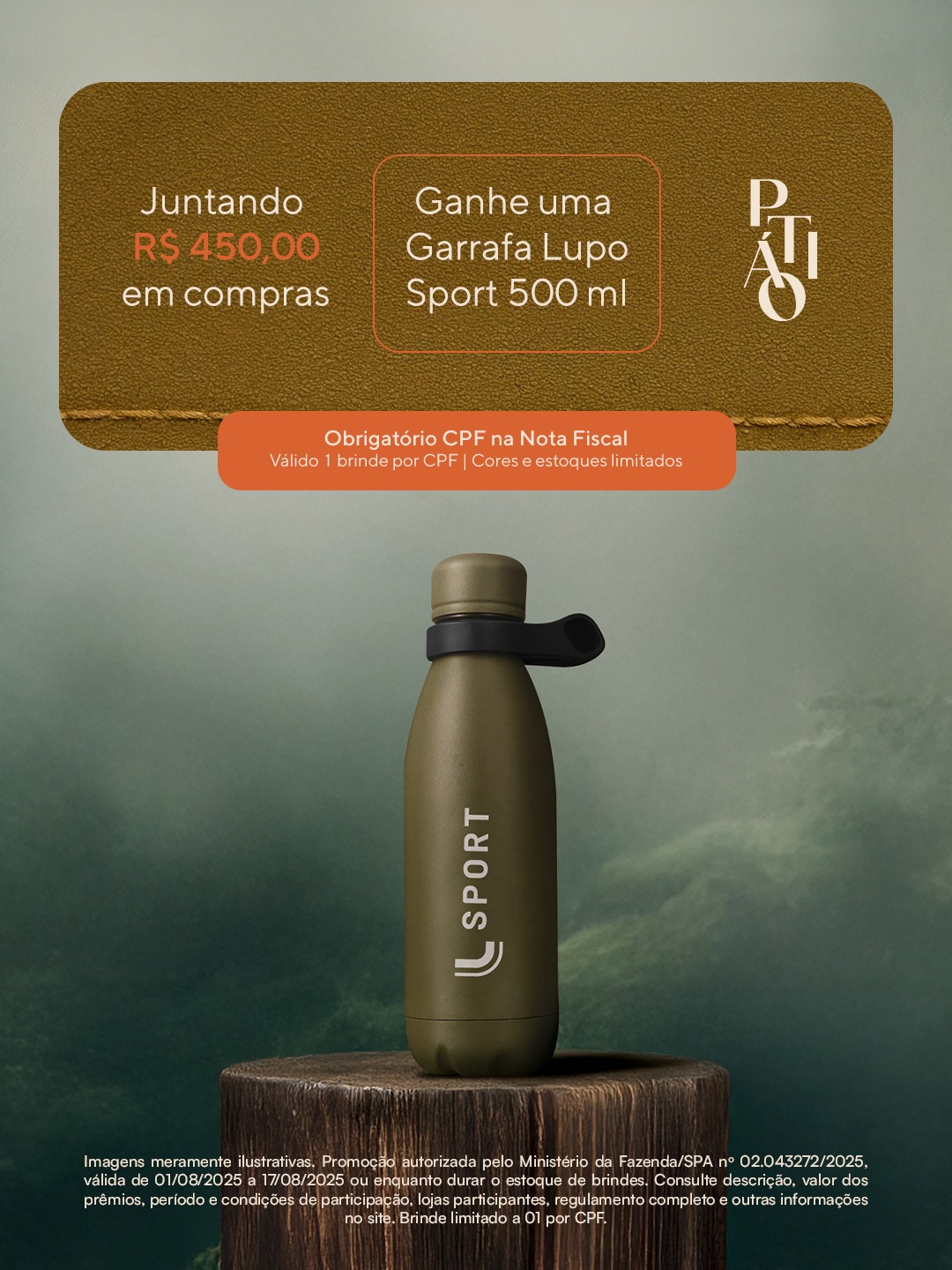 Para este Dia dos Pais, o Pátio Shopping preparou promoção especial para celebrar a data com estilo e bem-estar. Até 17 de agosto ou enquanto durar o estoque, o cliente que comprar nas lojas e quiosques participantes pode cadastrar seus cupons fiscais e trocá-los por uma garrafa térmica Lupo Sport 500ml, ideal para levar ao trabalho, academia ou em qualquer outra atividade.