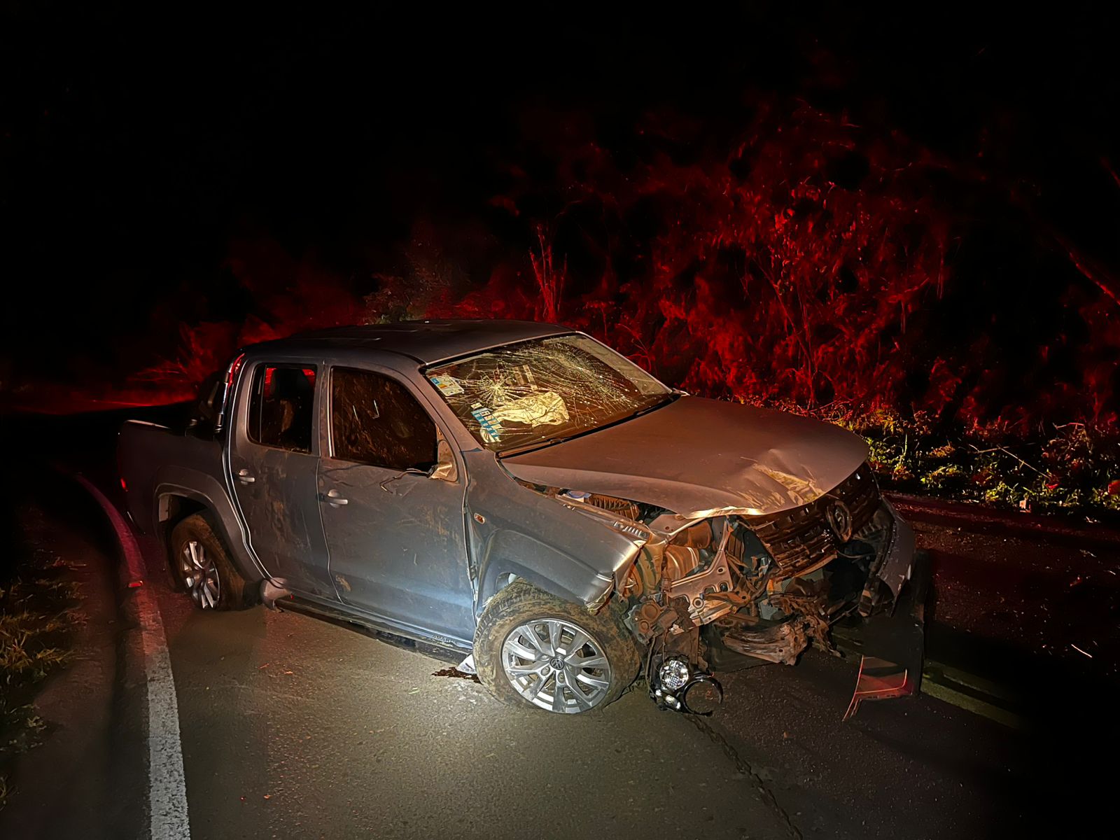 De acordo com o Corpo de Bombeiros de Modelo, a carona do banco dianteiro estava consciente e orientada, sentada próxima à via. Ela utilizava cinto de segurança e apresentava dores no lado esquerdo do tórax, sem ferimentos visíveis. Recebeu imobilização com maca rígida longa, oxigenação suplementar e foi levada ao Hospital Modelo.