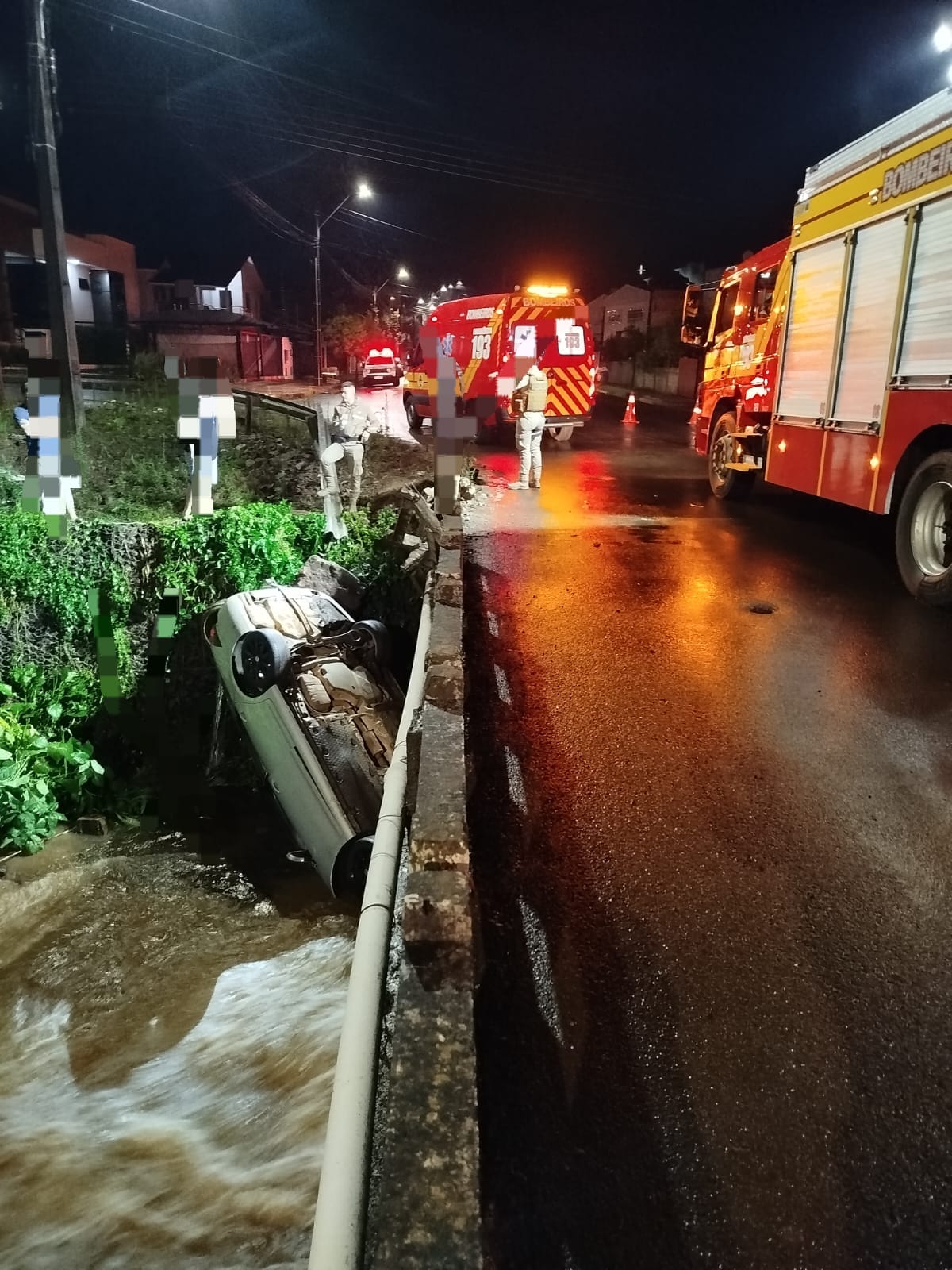 Na noite desta sexta-feira (17), por volta das 19h31, o Corpo de Bombeiros Militar de Maravilha atendeu a um grave acidente de trânsito na Avenida Entre Rios, onde um automóvel caiu dentro de um rio e ficou capotado, com parte da estrutura submersa.