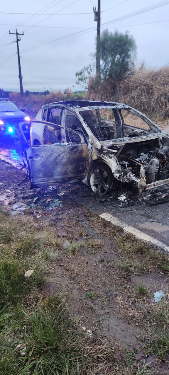 Um veículo ficou completamente destruído após pegar fogo na manhã desta sexta-feira (18) na Linha Água Amarela, interior de Chapecó, no Oeste de Santa Catarina. A ocorrência foi atendida pela equipe de socorristas do Corpo de Bombeiros Militar do 6° BBM/Fron por volta das 6h50min.