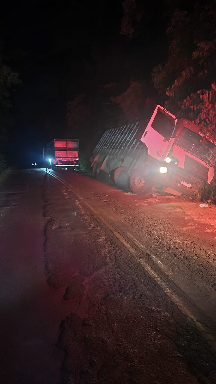 Condutor sofreu escoriações e foi levado ao hospital após atendimento dos bombeiros Um caminhão tombou após sair da pista na…