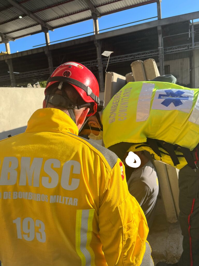De acordo com o Corpo de Bombeiros Militar-SC, por volta das 07h27 a corporação foi acionada para atender a ocorrência. Ao chegar no local, a vítima já havia sido retirada debaixo do bloco por colegas de trabalho.