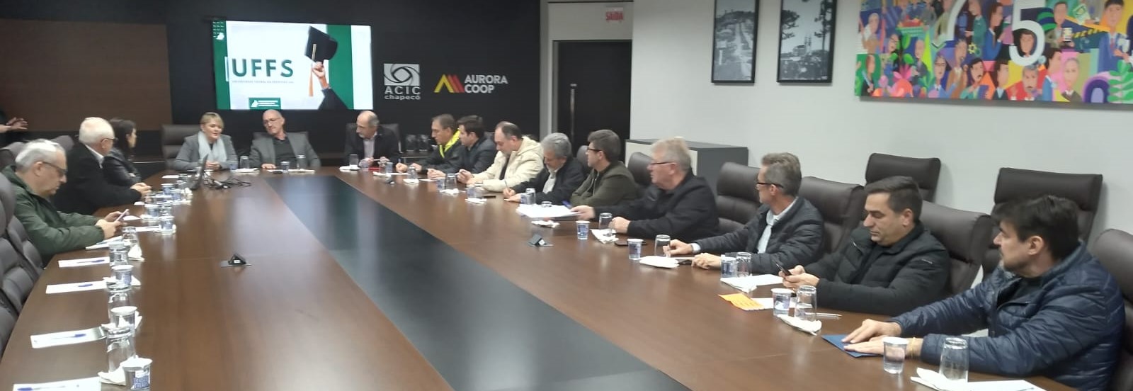 O Centro Empresarial de Chapecó (CEC) promoveu uma reunião extraordinária para discutir o futuro do curso de Medicina da Universidade Federal da Fronteira Sul (UFFS) e os avanços em torno da proposta de implantação de um Hospital Universitário na cidade. O encontro contou com a presença do reitor João Alfredo Braida, assessores da universidade e da deputada estadual Luciane Carminatti.