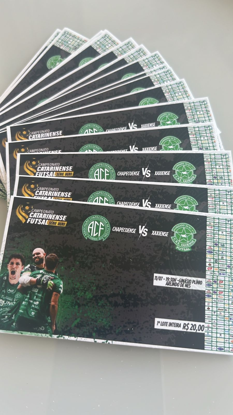 A venda começou neste sábado (5). A expectativa é de um grande público, e o torcedor pode antecipar a compra do bilhete nos seguintes locais: Arena Calçadão Itália (na esquina das ruas Mato Grosso e Florianópolis, no bairro Jardim Itália); loja iXap Sports (na esquina da avenida Nereu Ramos com a rua Marechal Deodoro, no Centro); e loja iXap Sports (na avenida Getúlio Vargas, entre as ruas Paulo Marques e Vitório Cella, no Centro).