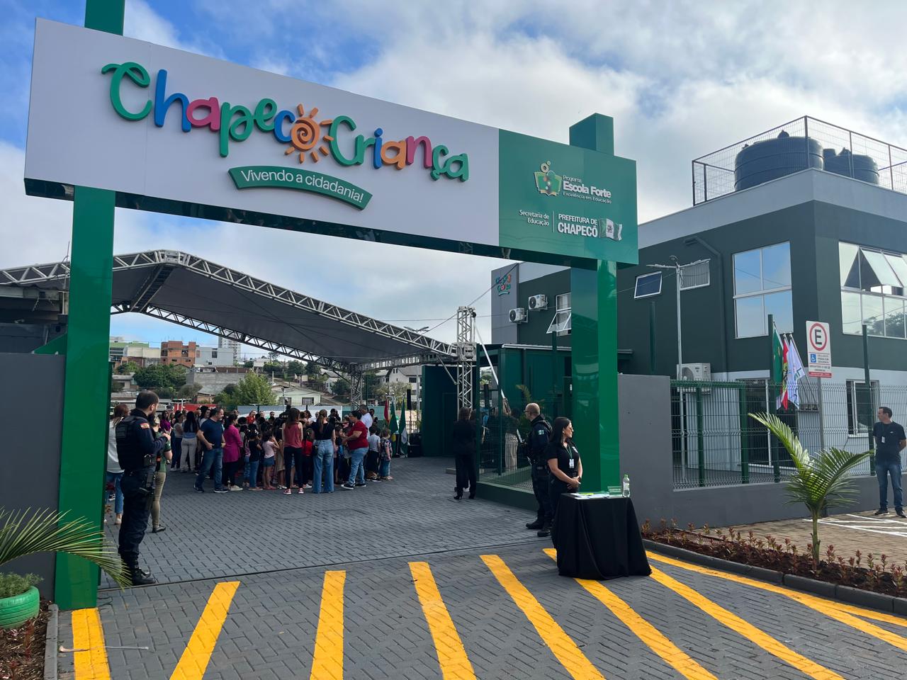 A Prefeitura de Chapecó reinaugurou na manhã desta quinta-feira (19) o espaço “Chapecó Criança”, localizado na Praça da Família Sandro Pallaoro, no bairro Bom Pastor. O local foi projetado para proporcionar experiências educativas por meio de uma cidade em escala reduzida, com estruturas que simulam o funcionamento da sociedade.