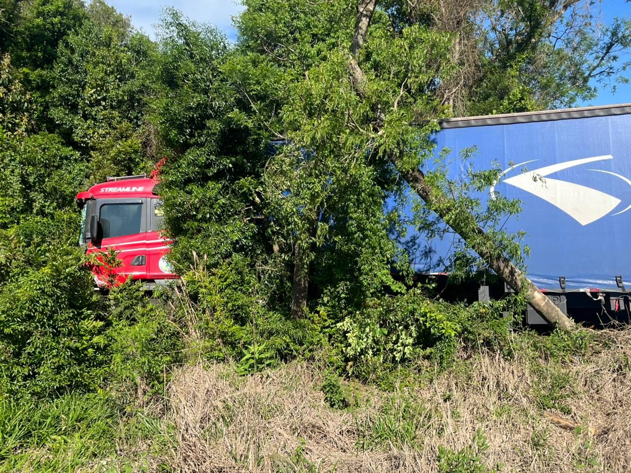 Na tarde desta quarta-feira (22), por volta das 14h30, um grave acidente foi registrado no Contorno Viário Oeste, em Chapecó. Um caminhão saiu da pista e colidiu contra uma árvore às margens da rodovia.