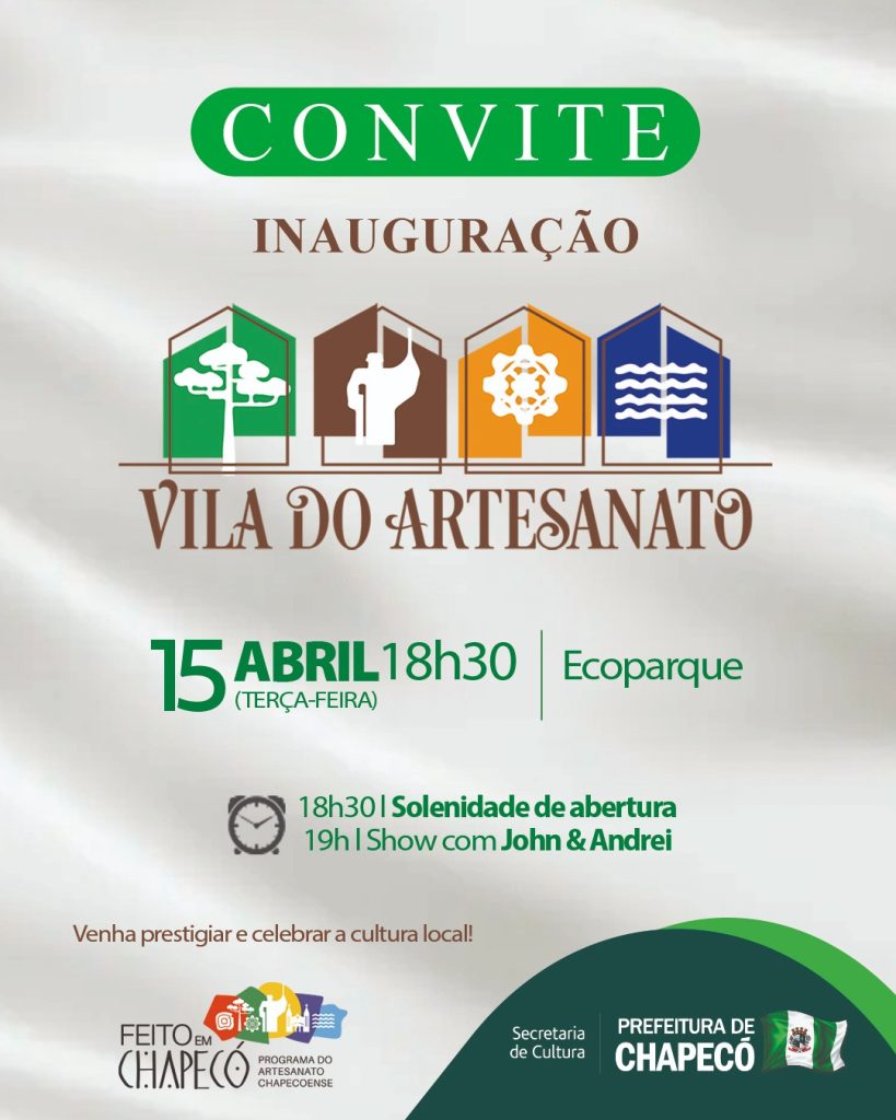 A valorização da cultura e do talento local ganha um novo espaço em Chapecó. Na próxima terça-feira, dia 15 de abril, a cidade realizará a inauguração oficial da Vila do Artesanato, um ambiente criado especialmente para promover e fortalecer o trabalho dos artesãos chapecoenses.