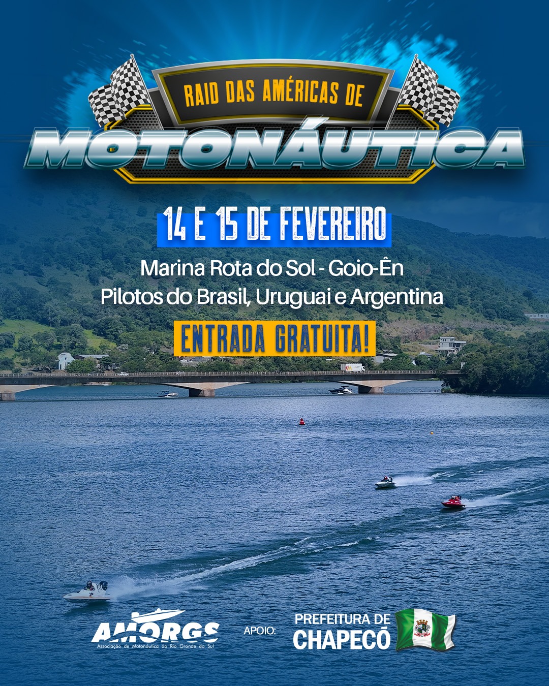 Chapecó será palco de muita adrenalina e velocidade nos dias 14 e 15 de fevereiro, com a realização do Raid das Américas de Motonáutica, um dos eventos mais aguardados do calendário esportivo náutico da região Sul.