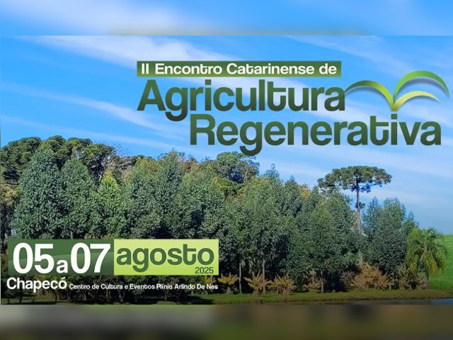 Começa nesta terça-feira (5) o II Encontro Catarinense de Agricultura Regenerativa, no Centro de Eventos Plínio Arlindo de Nes, em Chapecó. Até o dia 7, o evento reúne mais de 500 participantes, entre produtores rurais, técnicos, pesquisadores e profissionais do setor agrícola, para discutir caminhos sustentáveis para a produção de alimentos em Santa Catarina.