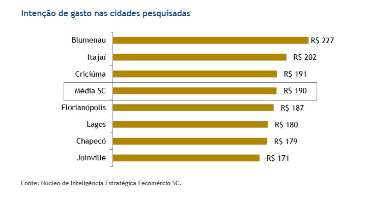 Para conhecer as intenções de gasto e compra do consumidor, a pesquisa ocorreu também em Blumenau, Criciúma, Florianópolis, Itajaí, Joinville e Lages, com entrevistas de 2.100 pessoas, de 7 a 22 de maio