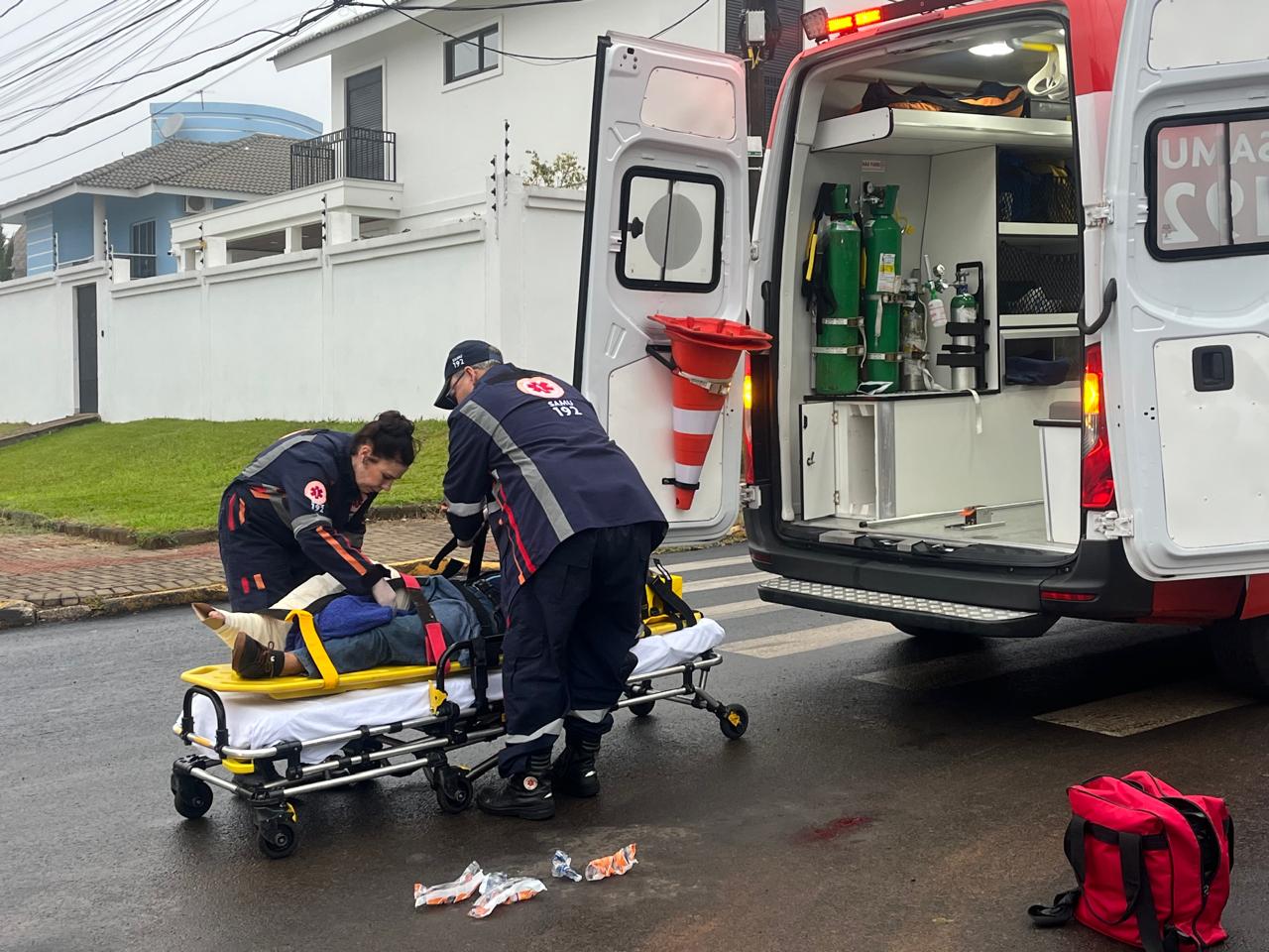 Por volta das 7h44min da manhã desta quinta-feira (22), a equipe do SAMU foi acionada para atender um acidente de trânsito no bairro Maria Goretti, em Chapecó. A colisão envolveu um veículo Fiat /Fiorino, conduzido por um homem maior de idade, e um ciclista.