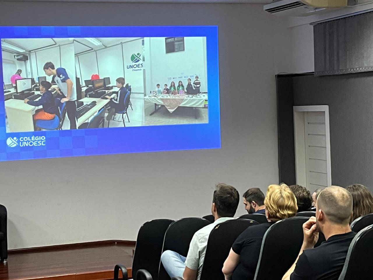 O Colégio Unoesc Chapecó realizou, na noite de quinta-feira (13), o lançamento oficial do seu novo Ensino Médio, que abrirá turmas a partir do primeiro semestre de 2026. O evento, realizado no auditório do Bloco A da Universidade, reuniu famílias, educadores e comunidade interessada na proposta, que promete unir excelência acadêmica e integração direta com o ambiente universitário.