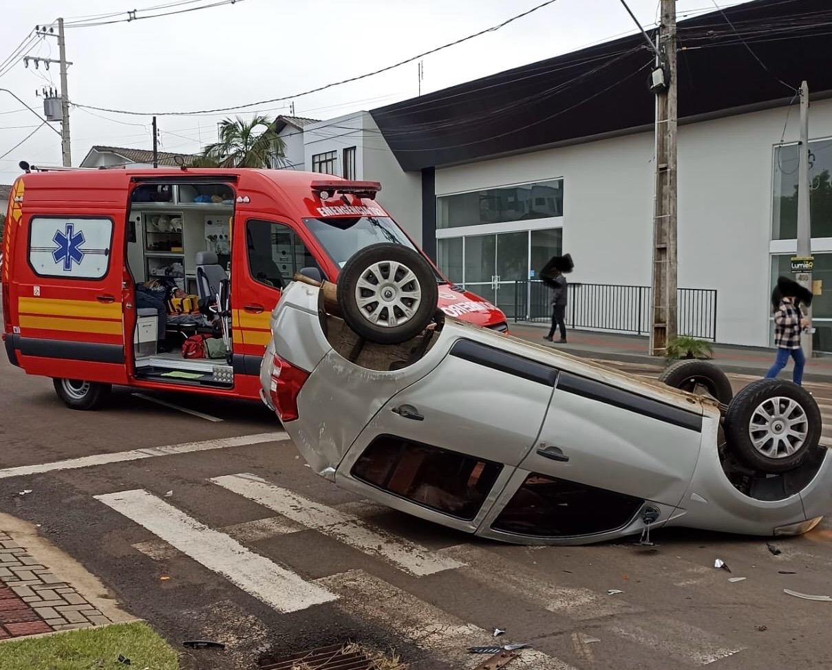 Por volta das 12h54min de sexta-feira (27), socorristas do Corpo de Bombeiros Militar atenderam uma colisão lateral entre dois veículos de passeio na rua Aracaju, esquina com a Avenida Manaus, em Pinhalzinho (SC). O acidente resultou no capotamento de um dos carros.