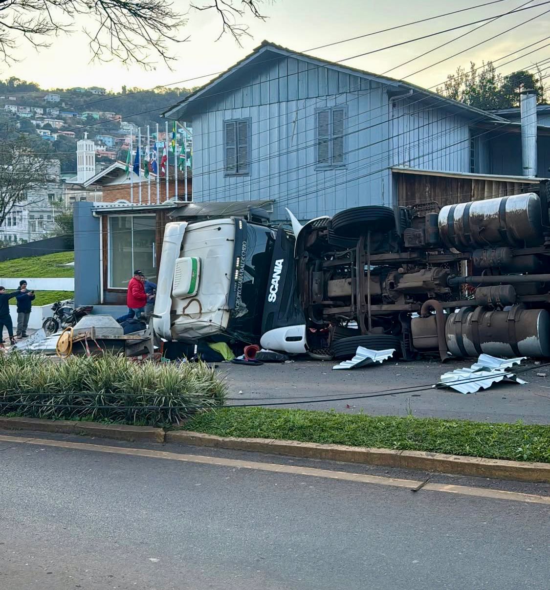 Equipes do Corpo de Bombeiros Militar de Seara foram acionadas por volta das 17h44min de segunda-feira (11), para atender um acidente de trânsito na rua do Comércio, centro do município. A colisão traseira envolveu uma carreta e um veículo de passeio, seguida de saída de pista e capotamento.