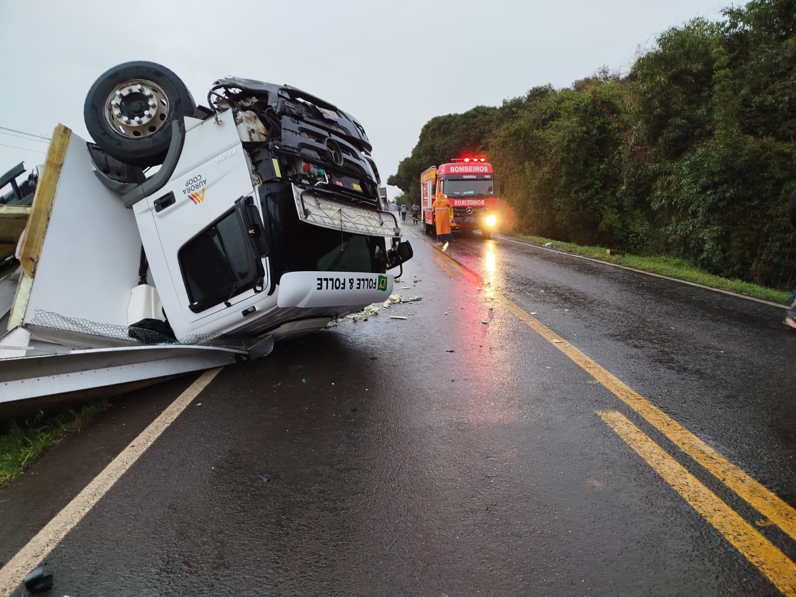 No local, os bombeiros identificaram três vítimas: o motorista do caminhão e os dois ocupantes do carro de passeio. O condutor do caminhão, homem consciente, encontrava-se deitado em decúbito dorsal sob a cabine capotada, apresentando hipotermia e suspeita de luxação no ombro esquerdo, além de dores na pelve. Ele recebeu atendimento com protocolo de restrição de mobilidade da coluna, sendo posteriormente encaminhado à unidade de saúde pela Unidade de Suporte Avançado (USA) do SAMU.