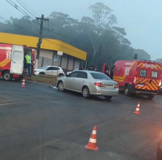 Chapecó/SC – A colisão que envolveu um veículo Toyota Corolla e uma motocicleta Honda Titam foi registrado na manhã desta sexta-feira (12), no trevo entre a SC – 283 e a SC -484, no bairro Efapi.