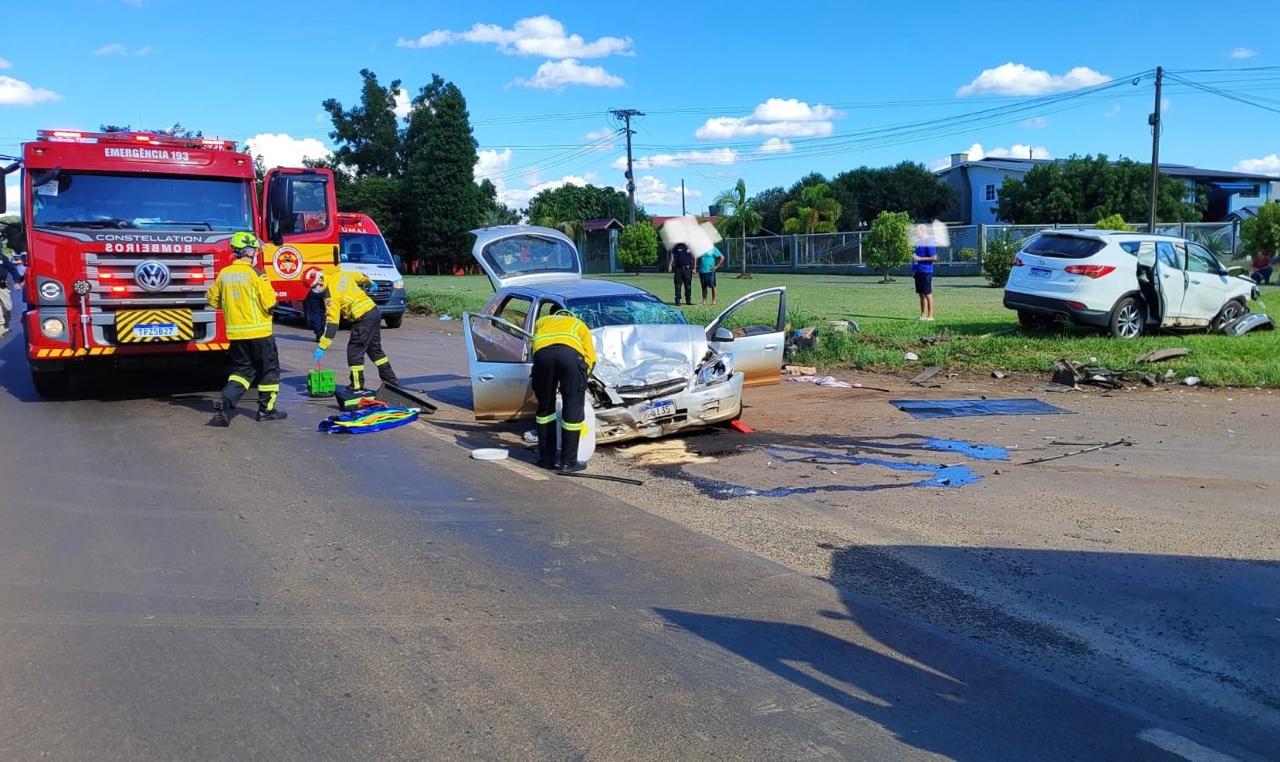 Acidente envolveu dois carros e mobilizou equipes de resgate na localidade de Sede Figueira
