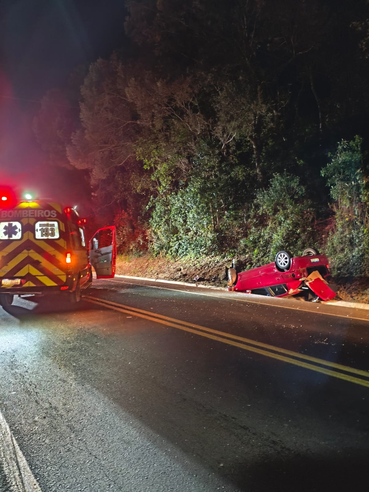 No local, os bombeiros constataram que o condutor do Astra caminhando pela cena, apresentando sinais vitais estáveis e apenas escoriações na face. Ele foi encaminhado ao Hospital de Faxinal dos Guedes pelo Corpo de Bombeiros.