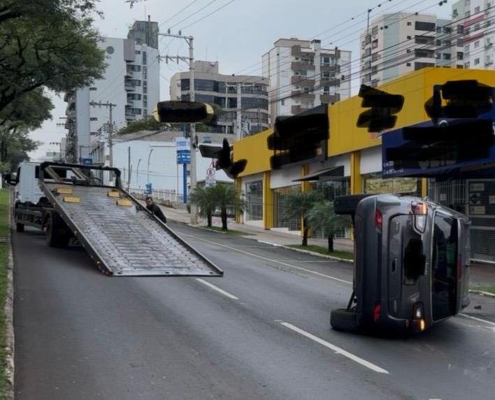De acordo com informações coletadas no local, o Jeep Compass seguia pela Fernando Machado, no sentido norte/sul da cidade, quando foi atingido pelo GM Cruze, que trafegava na direção Sete de Setembro/Getúlio Vargas. A batida lateral provocou o capotamento do Compass.
