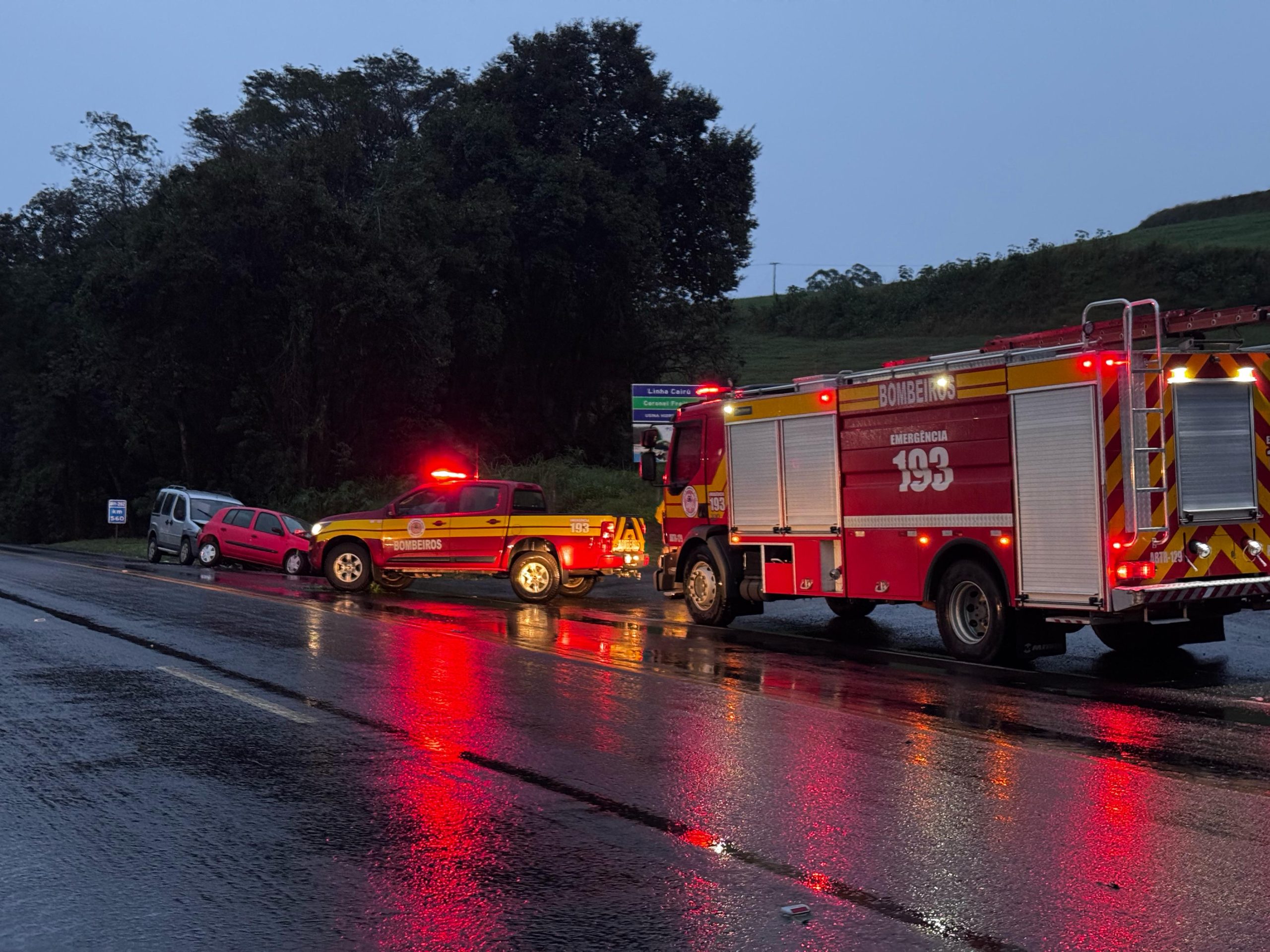 Acidente entre dois carros mobilizou bombeiros de três municípios na tarde de sexta-feira