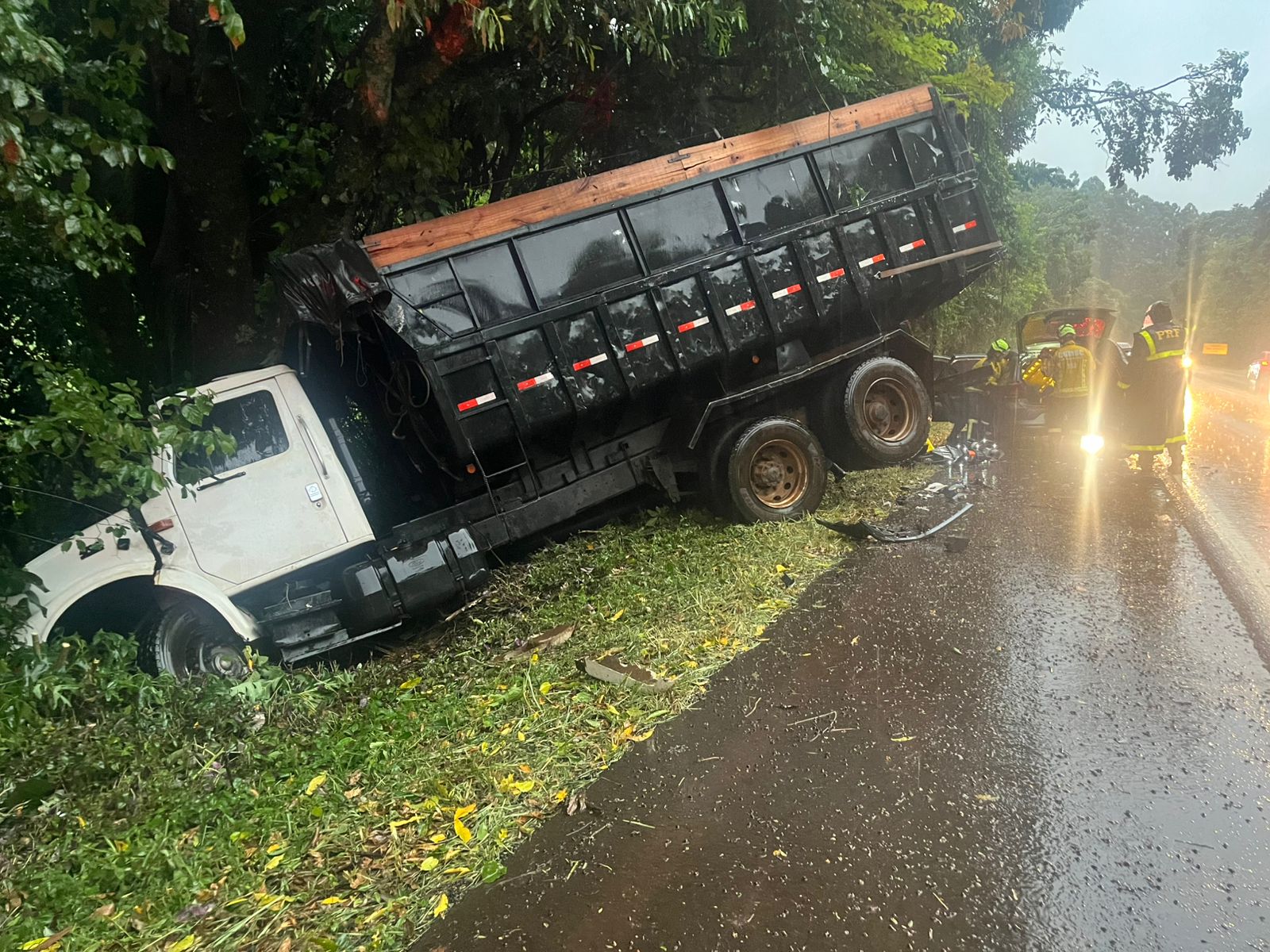 No local, atuaram equipes da Polícia Rodoviária Federal (PRF), do Serviço de Atendimento Móvel de Urgência (SAMU) e do Corpo de Bombeiros. O condutor do caminhão não sofreu ferimentos.